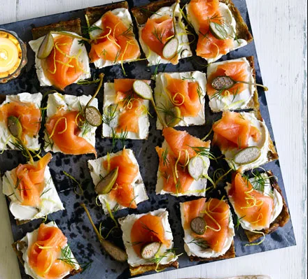 Canape là loại đồ ăn khai vị, được bày biện đẹp mắt với kích thước nhỏ xinh chừng vài cm, nghĩa là chỉ vừa 1 miếng cắn để người ăn thưởng thức.